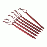 Jeu de 6 sardines en Y en aluminium 7075, très rigides, bien adaptées pour terrains durs, avec cordelette.