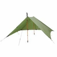 Tarp en silnylon 40D, solide, bien adapté pour un voyage au long cours, comprend 6 haubans en Dyneema et 8 sardines DAC.